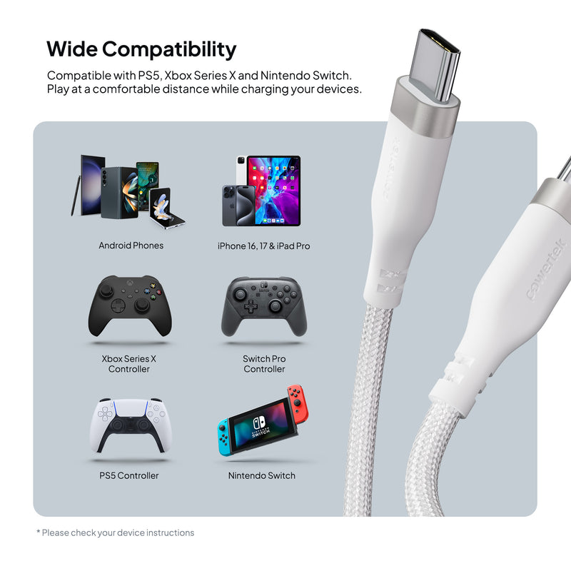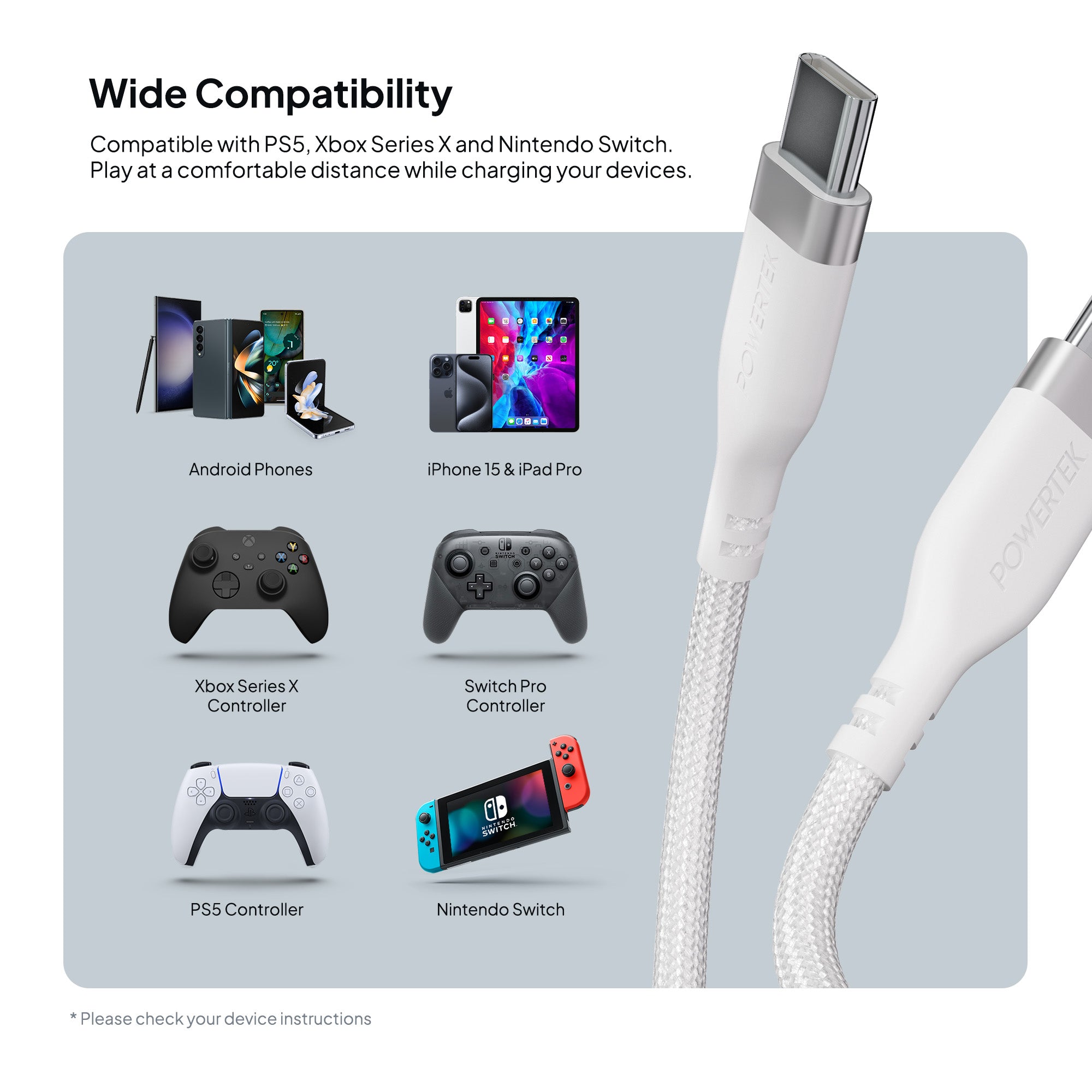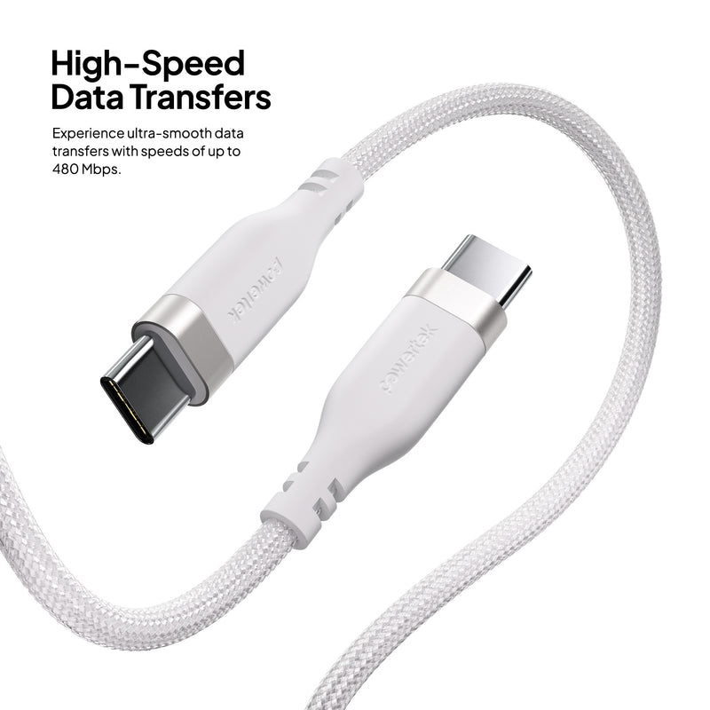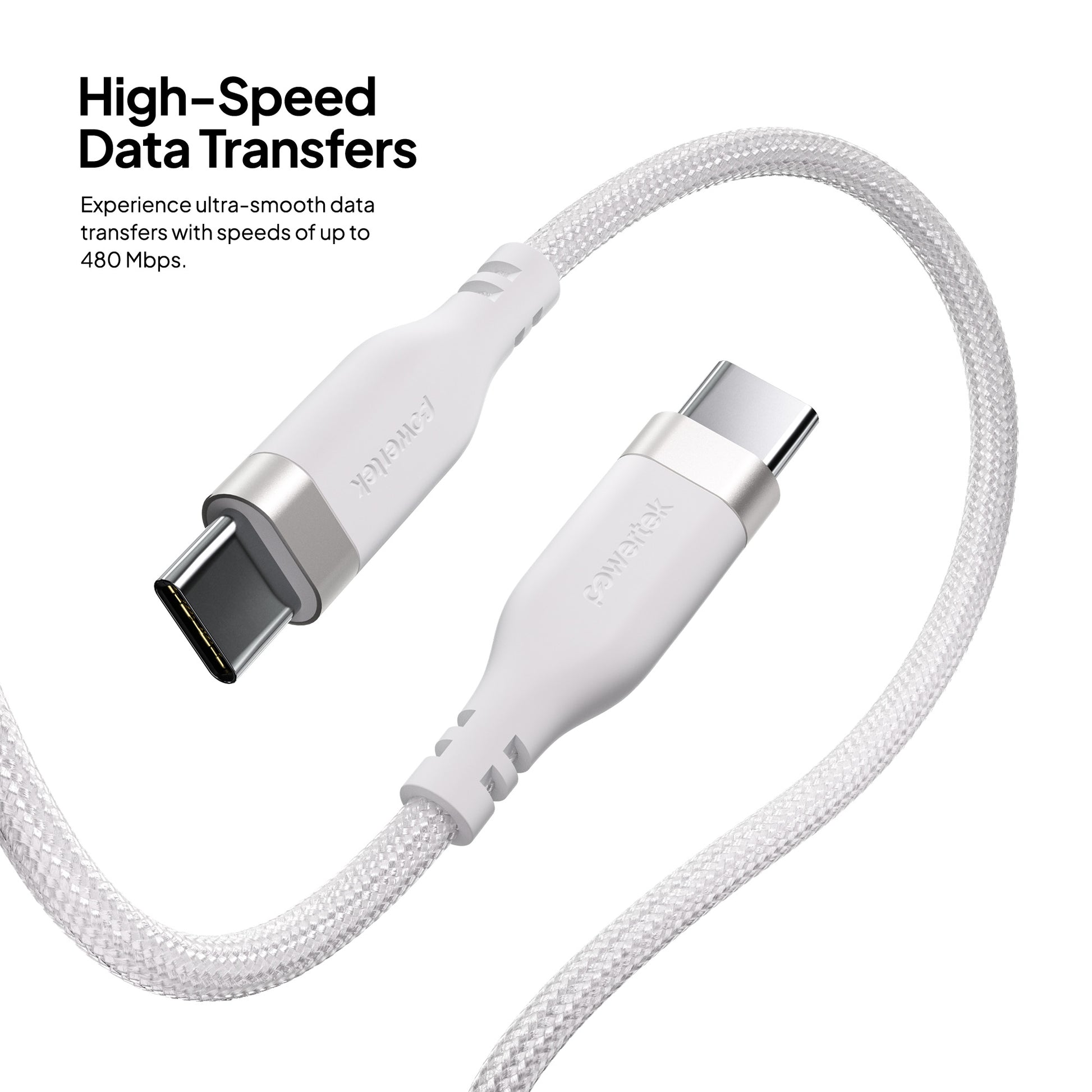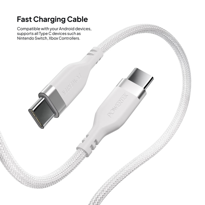 Upgrade your everyday charging experience with the Powertek Premium Braided USB-C to USB-C cable. Built for long-lasting performance, this premium 6-foot cable features a durable braided nylon design and high-quality USB-C chips for reliable, fast charging every time.