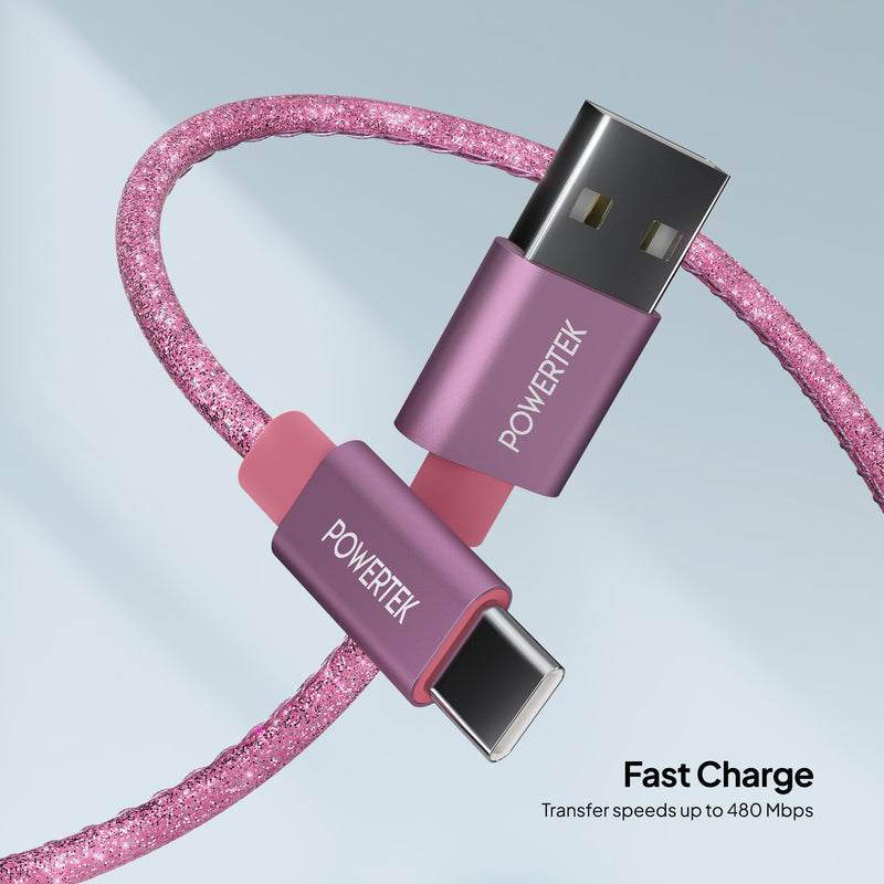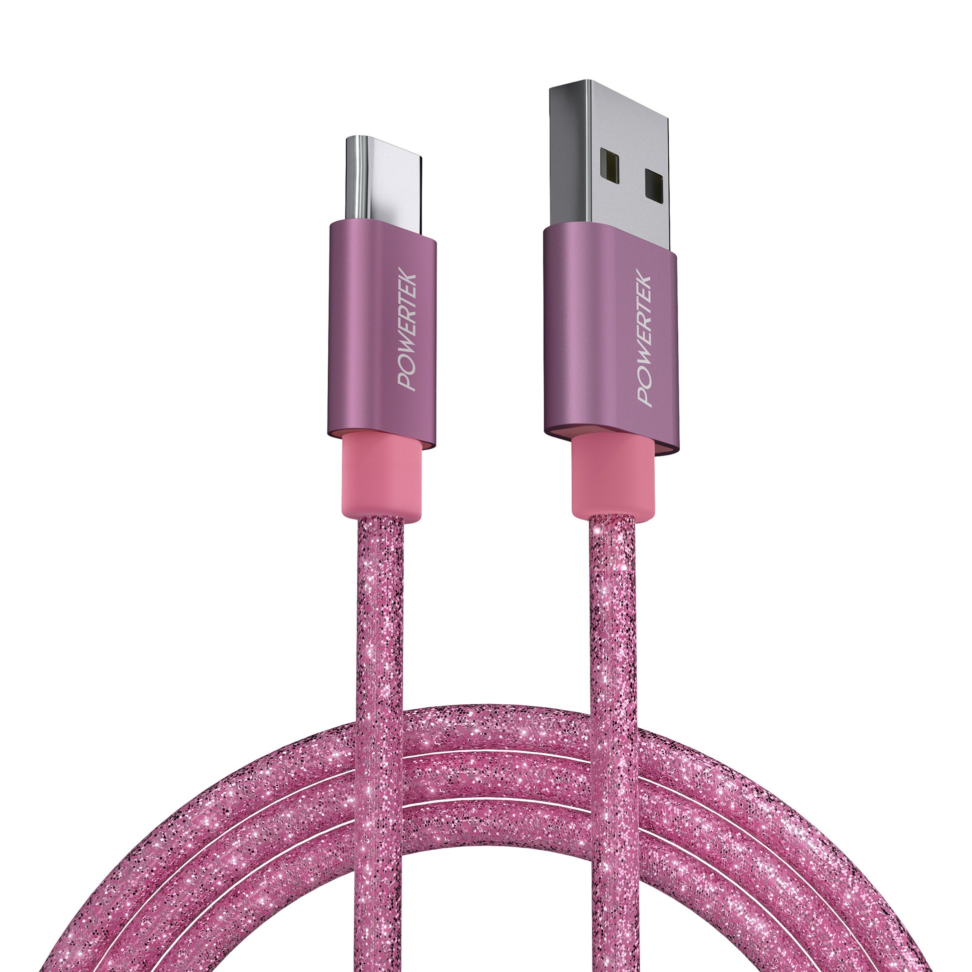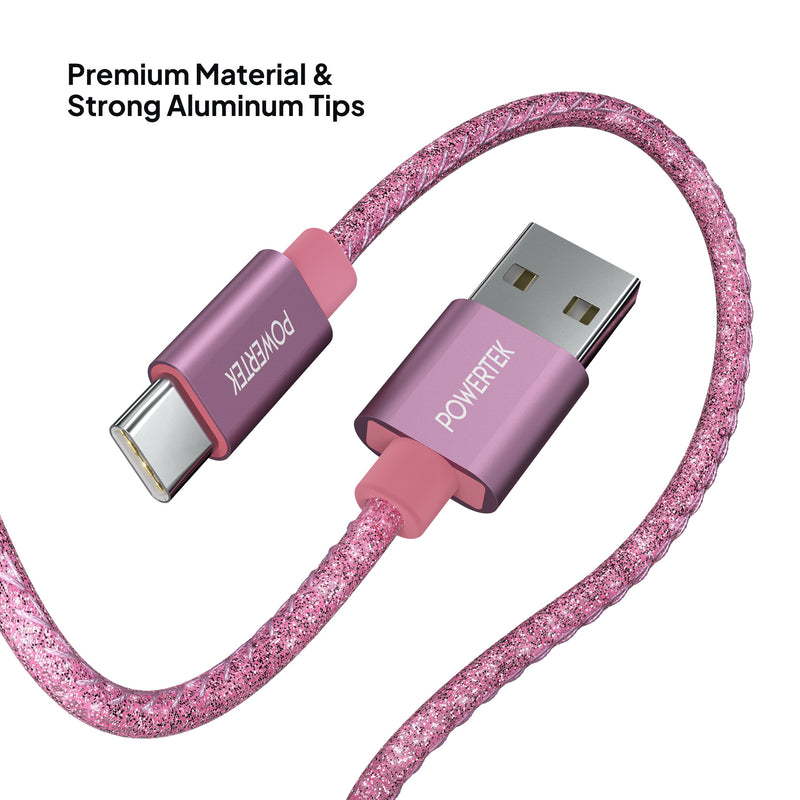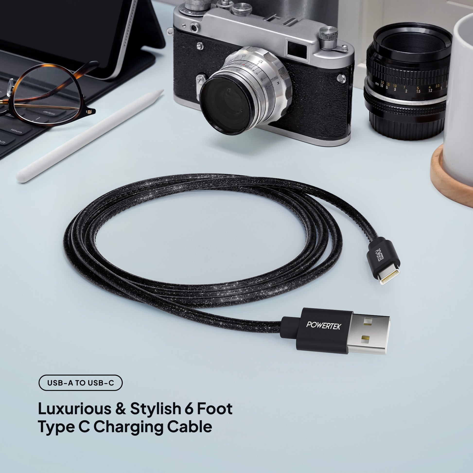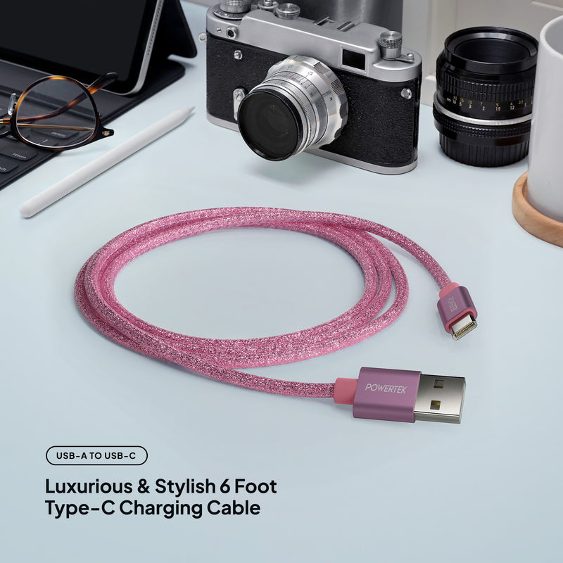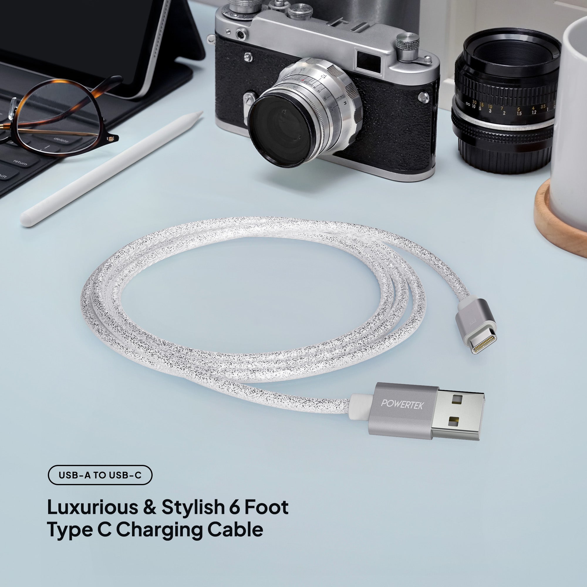 Powertek Premium Glitter 6ft USB-A to USB-C Charging Cable