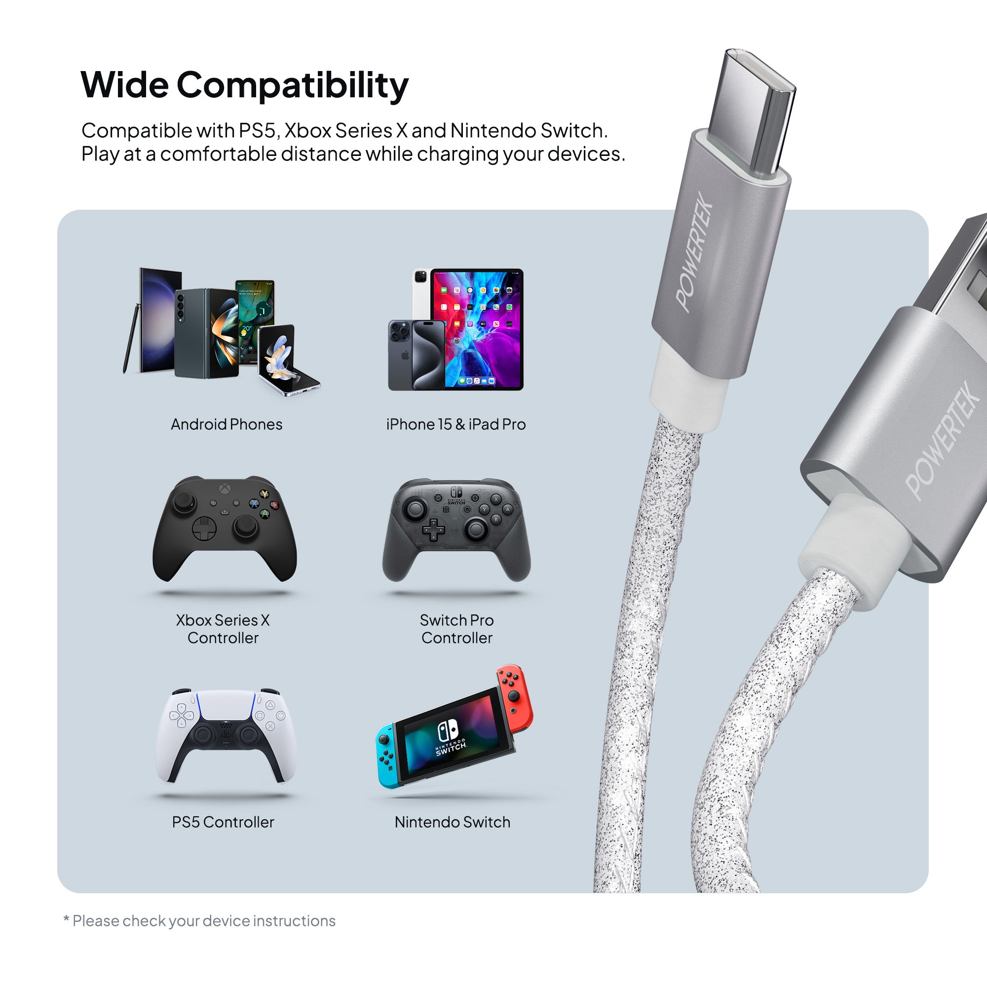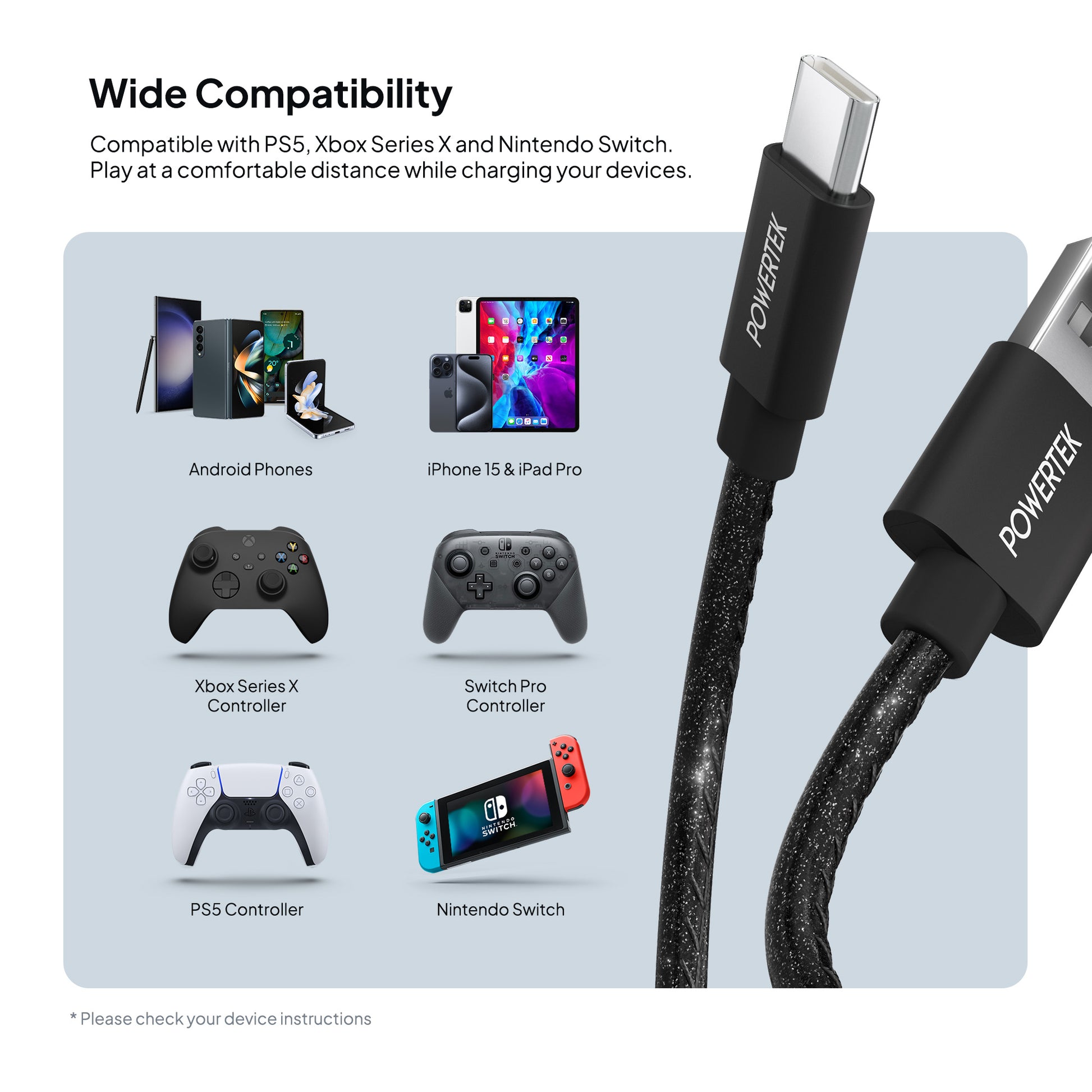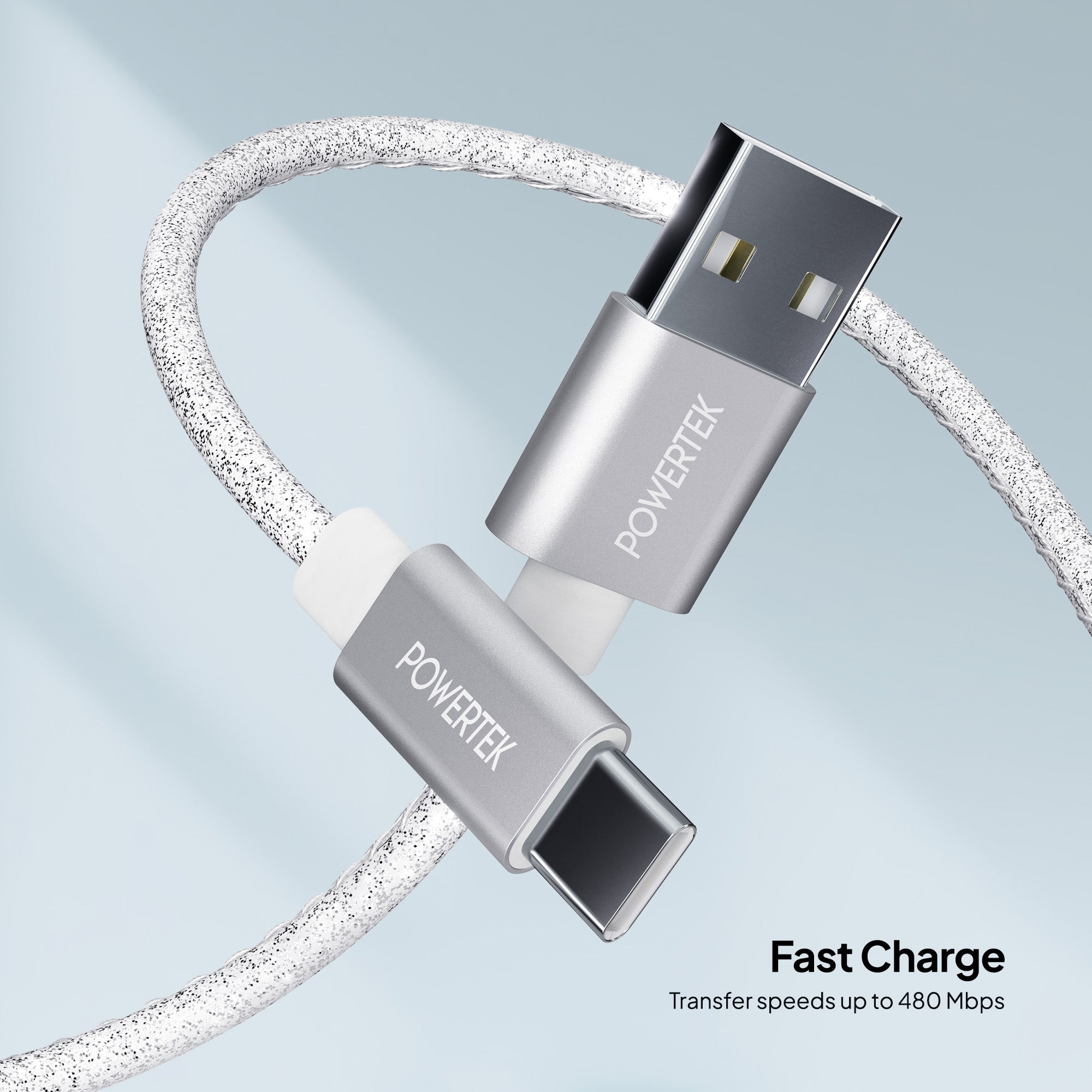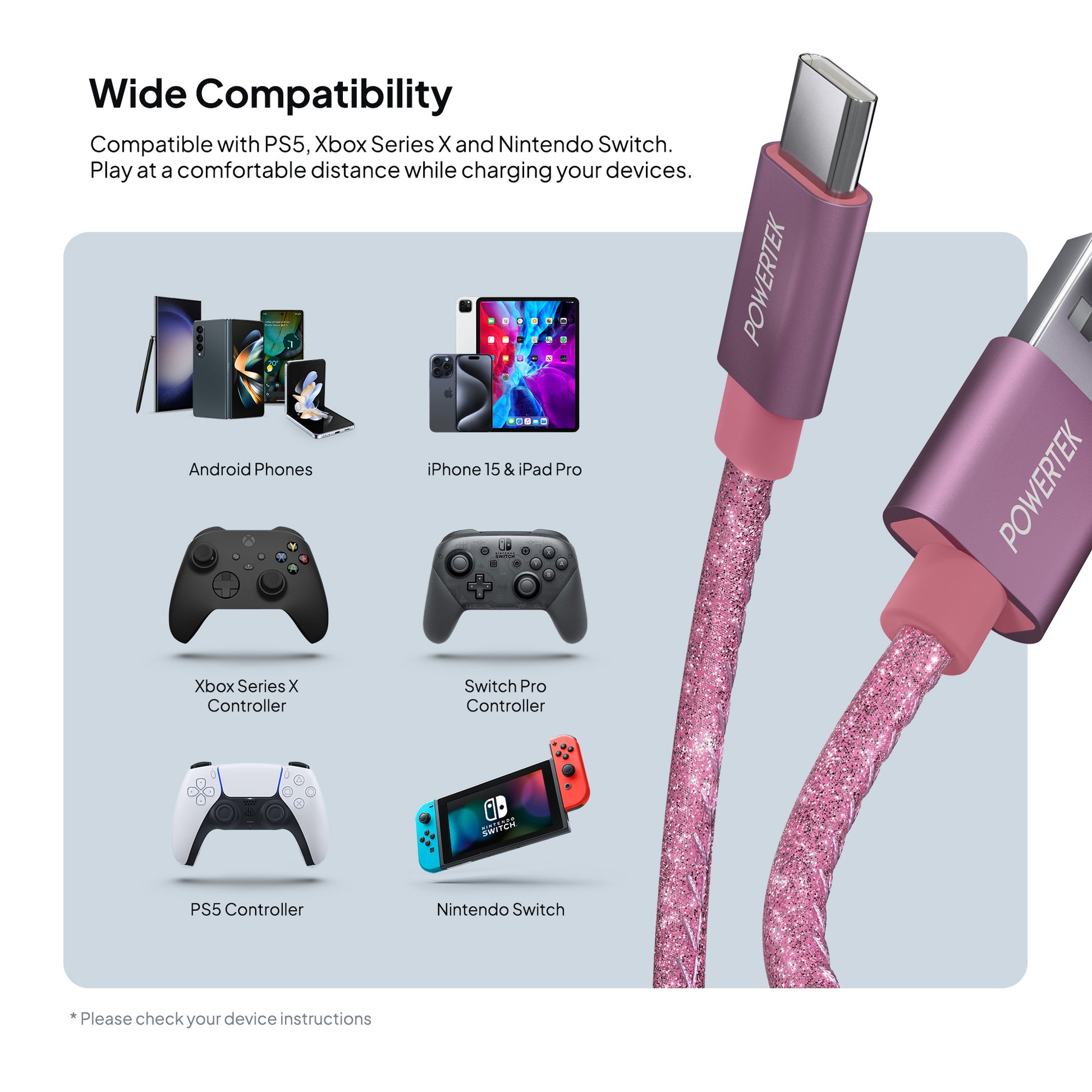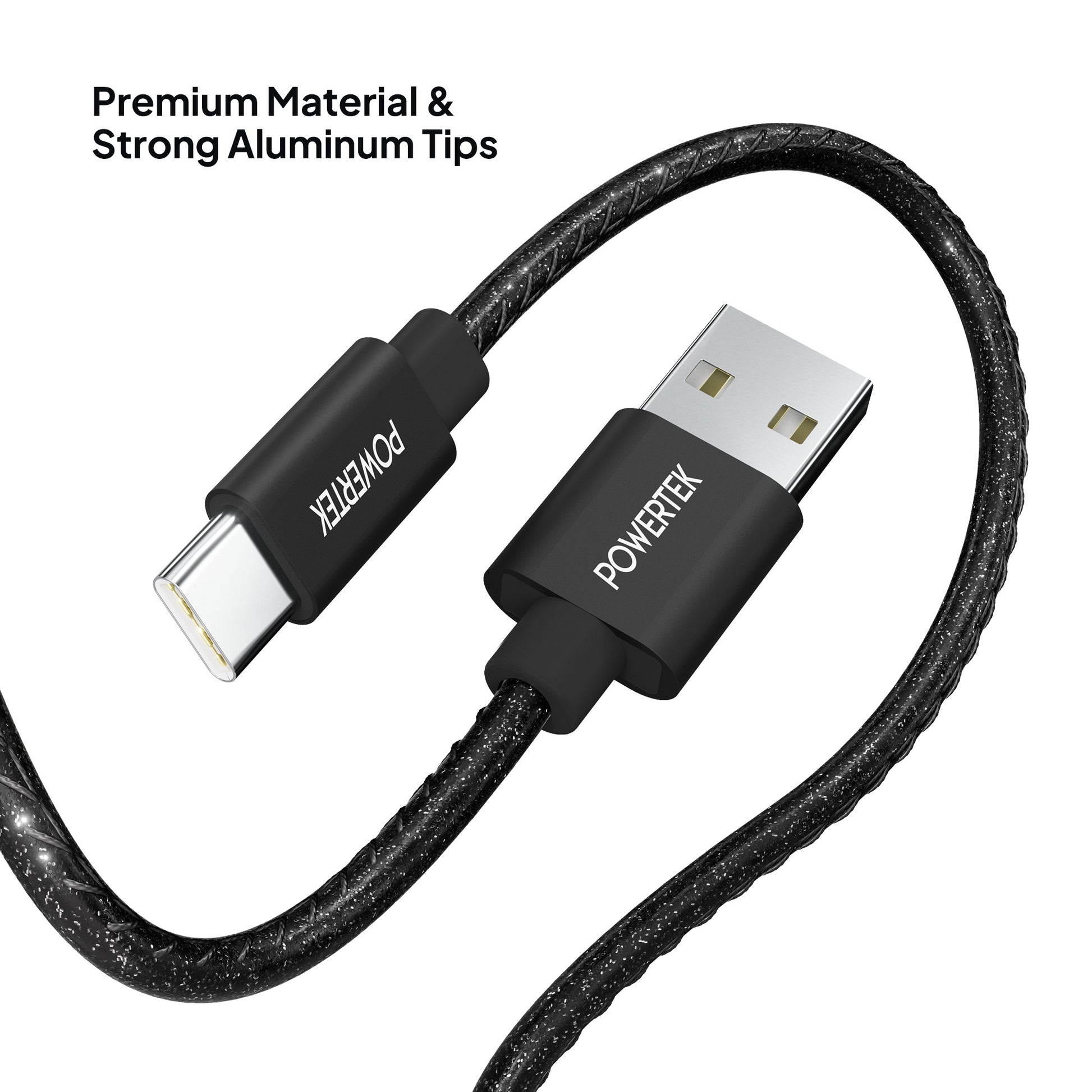 Powertek Premium Glitter 6ft USB-A to USB-C Charging Cable